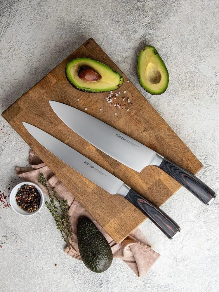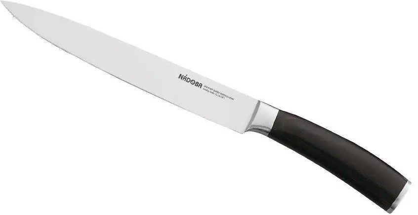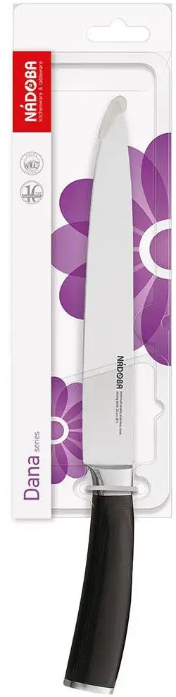 Nadoba Нож разделочный «Dana»острый тяжелый качество В данный момент этот товар отсутствует в продаже. Возможно, у нас найдется аналогичный или похожий товар здесь. Серия: Dana Разделочный нож Dana — универсальный кухонный инструмент, который подходит для разделывания мяса, птицы и рыбы. Лезвие металлического ножа длиной 20 см выполнено из высококачественной нержавеющей стали, за счет клиновидного профиля клинок отличается высокой прочностью режущей кромки, качественным резом и простотой заточки. Толщина лезвия у обуха стального ножа составляет 2,4 мм и обеспечивает высокую прочность, хороший баланс, а также удобство и безопасность работы с ножом. Ножи изготовлены из цельной стальной заготовки путём горячей ковки, что обеспечивает улучшение структуры металла, хорошую балансировку ножа и длительный срок его службы. Твердость лезвия ножа составляет 56-58 HRC по шкале Роквелла. Эргономичная ручка ножика с гладкой поверхностью удобно лежит в руке во время использования, не скользит и легко моется. Материал ручки разделочного ножа — специальный высококачественный водостойкий древесно-полимерный композит pakkawood, экологически чистый материал на основе натуральной древесины с высокими эстетическими свойствами, но при этом обладающий более высокой прочностью и влагостойкостью. Товары для дома и кухни и кухонные принадлежности NADOBA можно преподносить в качестве подарков на праздники и торжества, в том числе на новоселья. Гарантия — 10 лет. |