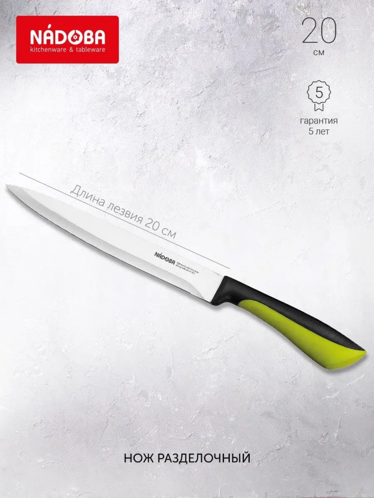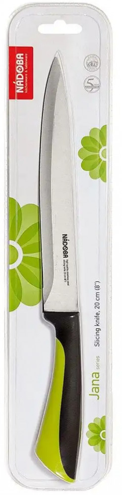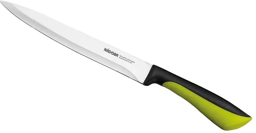 Nadoba Нож разделочный «Jana»острый клинок неудобная ручка нужна заточка В данный момент этот товар отсутствует в продаже. Возможно, у нас найдется аналогичный или похожий товар здесь. Серия: Jana Разделочный нож Jana — универсальный кухонный инструмент, который подходит для разделывания мяса, птицы и рыбы. Лезвие ножа длиной 20 см выполнено из высококачественной нержавеющей стали, за счет пятигранного профиля клинок отличается высокой прочностью режущей кромки, качественным резом и простотой заточки. Толщина лезвия у обуха ножа составляет 1,6 мм и обеспечивает высокую прочность, хороший баланс, а также удобство и безопасность работы с ножом. Твердость лезвия ножа составляет 52-54 HRC по шкале Роквелла. Эргономичная ручка ножика с гладкой поверхностью и дополнительной резиновой вставкой удобно лежит в руке во время использования, не скользит и легко моется. Материал ручки ножа — специальный высококачественный пластик, устойчивый к механическим воздействиям. Товары для дома и кухни и кухонные принадлежности можно преподносить в качестве подарков на праздники и торжества, в том числе на новоселья. Гарантия — 5 лет. |
