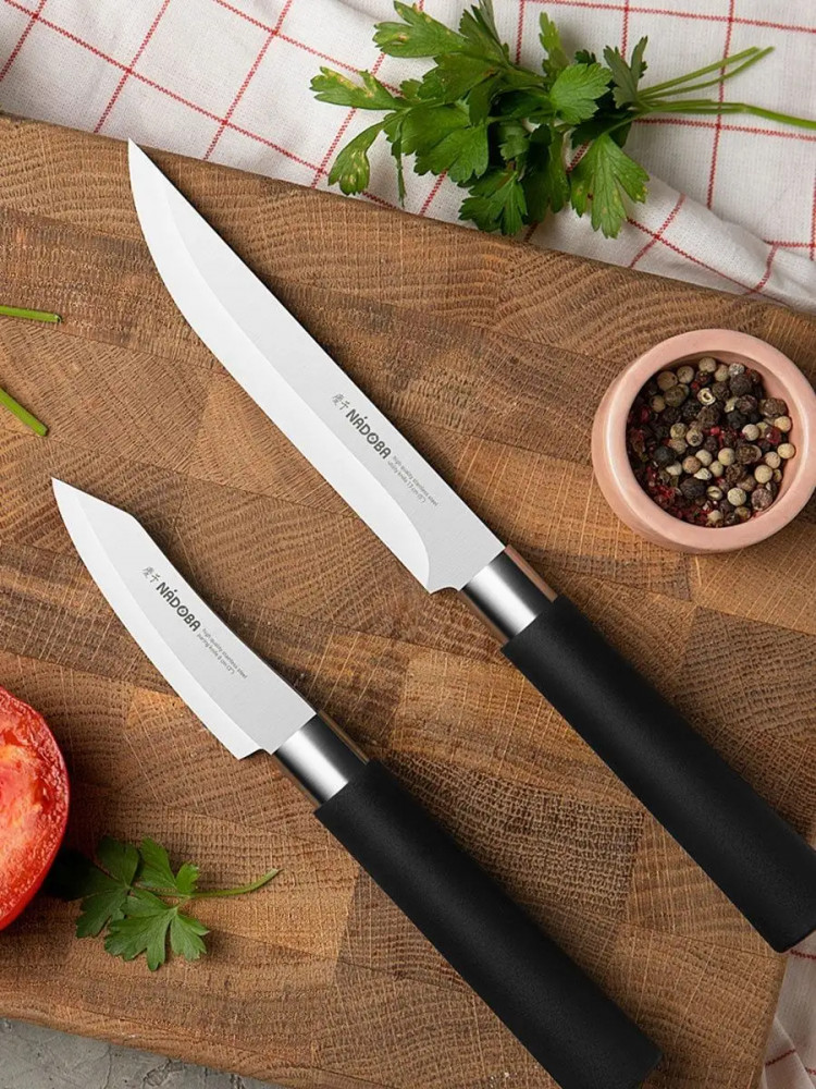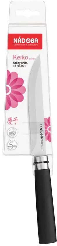 Nadoba Нож универсальный «Keiko»острый удобная ручка оптимальная длина качественный В данный момент этот товар отсутствует в продаже. Возможно, у нас найдется аналогичный или похожий товар здесь. Серия: Keiko Традиционный японский универсальный нож Keiko — многофункциональный кухонный инструмент, который подходит для повседневных забот на кухне, для нарезки продуктов и разделывания некрупной рыбы. Лезвие металлического ножа длиной 13 см выполнено из высококачественной нержавеющей стали, за счет пятигранного профиля клинок отличается высокой прочностью режущей кромки, качественным резом и простотой заточки. Толщина лезвия у обуха стального ножа составляет 1,6 мм и обеспечивает высокую прочность, хороший баланс, а также удобство и безопасность работы с ножом. Твердость лезвия ножа составляет 52-54 HRC по шкале Роквелла. Эргономичная ручка ножика с гладкой поверхностью удобно лежит в руке во время использования, не скользит и легко моется. Материал ручки универсального ножа — специальный высококачественный пластик, устойчивый к механическим воздействиям. |