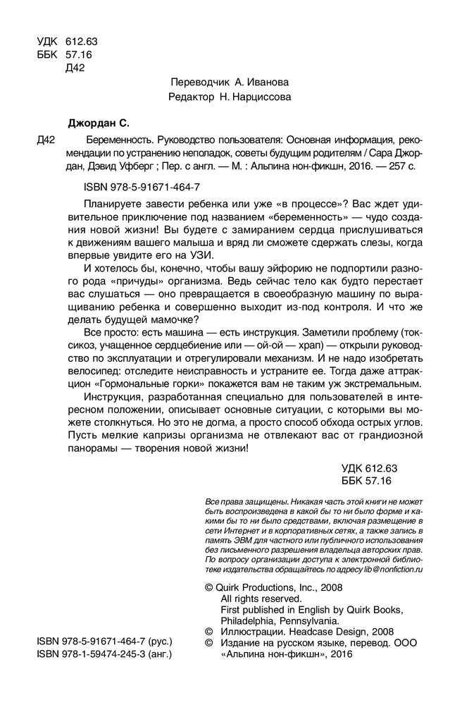 Беременность. Руководство пользователя. Основная информация, рекомендации по устранению неполадок, советы будущим родителямВ данный момент этот товар отсутствует в продаже. Возможно, у нас найдется аналогичный или похожий товар здесь. Планируете завести ребенка или уже «в процессе»? Вас ждет удивительное приключение под названием «беременность» — чудо создания новой жизни! Вы будете с замиранием сердца прислушиваться к движениям вашего малыша и вряд ли сможете сдержать слезы, когда впервые увидите его на УЗИ. |