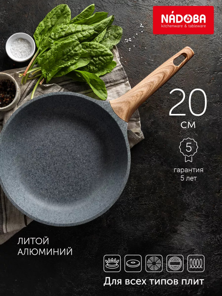Nadoba Сковорода с антипригарным покрытием «Mineralica»-30% +485 удобная ручка не подгорает легко смывается