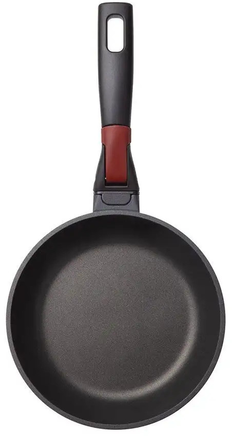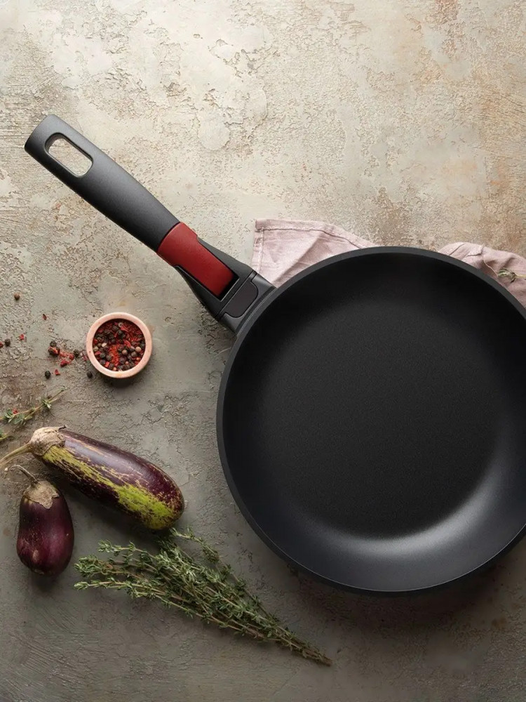 Серия Vilma изготовлена из литого алюминия с особо прочным 4-слойным антипригарным покрытием ILAG Ultimate, усиленным минералами. Антипригарное покрытие ILAG Ultimate не содержит PFOA, кадмий, свинец, а также любых других вредных веществ и полностью безопасно. Высокая прочность антипригарного покрытия позволяет использовать при приготовлении пищи неострые металлические инструменты. Массивный корпус из литого алюминия обеспечивает равномерной нагрев всей поверхности посуды и не деформируется при нагревании или после частого использования. Специальный термо-индикатор меняет цвет от черного до красного в зависимости от температуры сковороды. Красный цвет показывает, что достигнут оптимальный для начала приготовления нагрев до 160 °C. Удобная прочная ненагревающаяся съемная ручка из бакелита позволяет экономить пространство на кухне и использовать посуду в духовке. Подходит для всех типов плит, включая индукционные, а также для духовки если снять ручку или при температуре до 180 °C. Гарантия на алюминиевую посуду серии Vilma 5 лет.