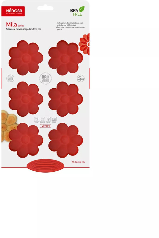 Nadoba Форма для выпечки «Mila»плотный силикон не прилипает удобные ручки запах маленький размер В данный момент этот товар отсутствует в продаже. Возможно, у нас найдется аналогичный или похожий товар здесь. Серия: Mila Силиконовая форма для выпечки серии Míla изготовлена из высококачественного жаропрочного силикона, отвечающего самому строгому европейскому стандарту качества LFGB (Германия). Экологически безопасный материал — пищевой силикон BPA free не содержит вредных примесей, не вступает в реакцию с пищей, не впитывает запахи, характеризуется повышенными эксплуатационными свойствами. |