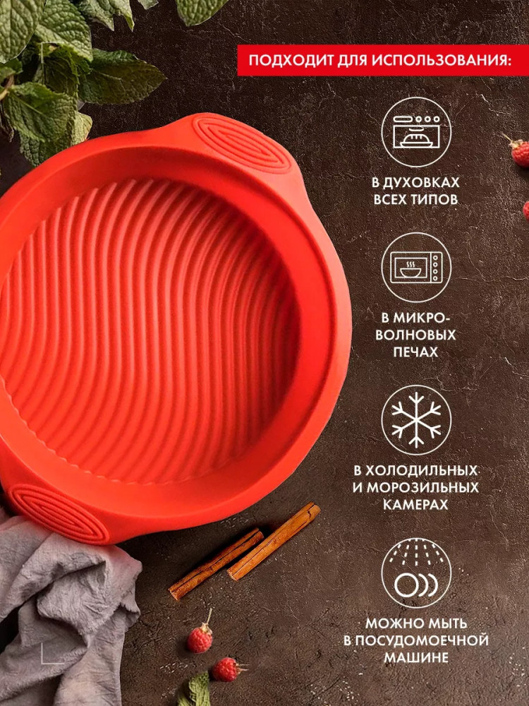 Долго вокруг этой формы ходила, прежде чем заказать. Итог, для меня это самая идеальная форма для выпечки. Ничем не смазывала, тем не менее ничего не прилипло и самое важное хорошо пропекся, и форма по прежнему выглядит как новая. Есть с чем сравнить. Брала от tapperware тоже красного цвета, там у меня тесто плохо пропеклось и после первого раза пятна остались.