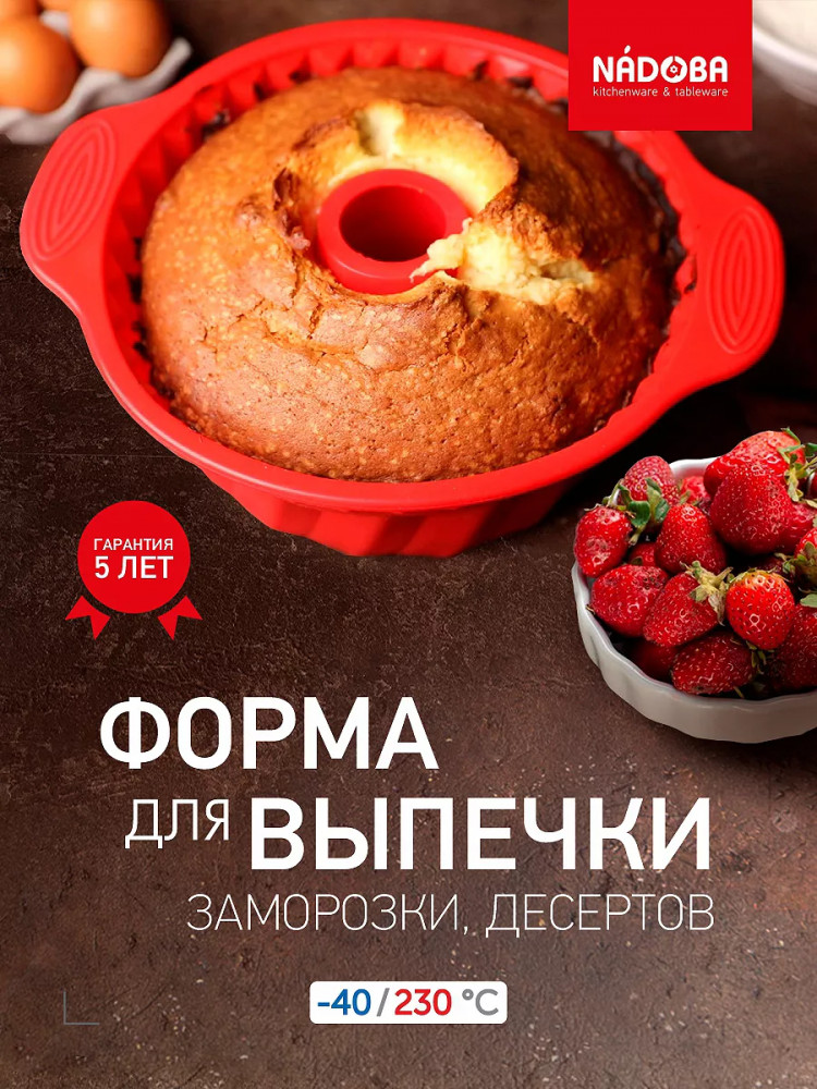 Фигурная форма для выпечки из силикона обладает широким диапазоном рабочих температур от -40 до +230 °С, благодаря этому ее можно использовать в духовках любого типа, микроволновых печах и морозильных камерах. Силиконовая форма не деформируется, ее можно сворачивать и хранить в сложенном виде. Форму для выпечки можно мыть как вручную, так и в посудомоечной машине. Силиконовую форму гораздо легче использовать, чем разъемную металлическую форму для выпечки, благодаря материалу выпечка гораздо легче вынимается и не пригорает. Гарантия – 5 лет.