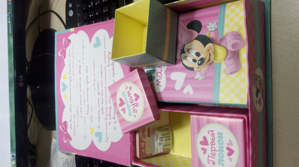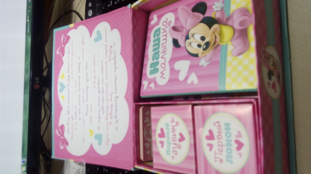 Нет коробочки для бирочки с роддома. На крышке коробки возле шва видны толстые следы клея. Когда решила вписать в текст данные ребенка шариковой ручкой- задела слово и всё размазалось,но ластиком всё легко стирается,разве что повторно записать я не смогла,ручка а тех местах уже не пишет..
