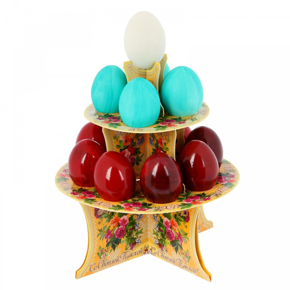 Отличный товар, скромный, всем нам известный материал - картон, но выполнен в глянце и традиционном узоре. Подставка создала праздничный вид стола и красиво презентовала всю шедевральность пасхальных яиц. Минутная сборка и возможность использовать вторично.
