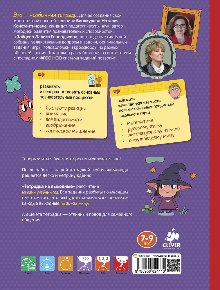 Тетрадка на выходные. 2 класс. Весёлые развивающие задания на весь год. ФГОСВ данный момент этот товар отсутствует в продаже. Возможно, у нас найдется аналогичный или похожий товар здесь. Серия: Начальная школа. Развиваем таланты Это – необычная тетрадь. Для ее создания свой многолетний опыт объединили Винокурова Наталия Константиновна, автор методики развития познавательных способностей, и Зайцева Лариса Геннадьевна, логопед-практик. В ней собраны увлекательные вопросы и задачи, оригинальные задания, игры, головоломки и кроссворды из разных областей знания. |