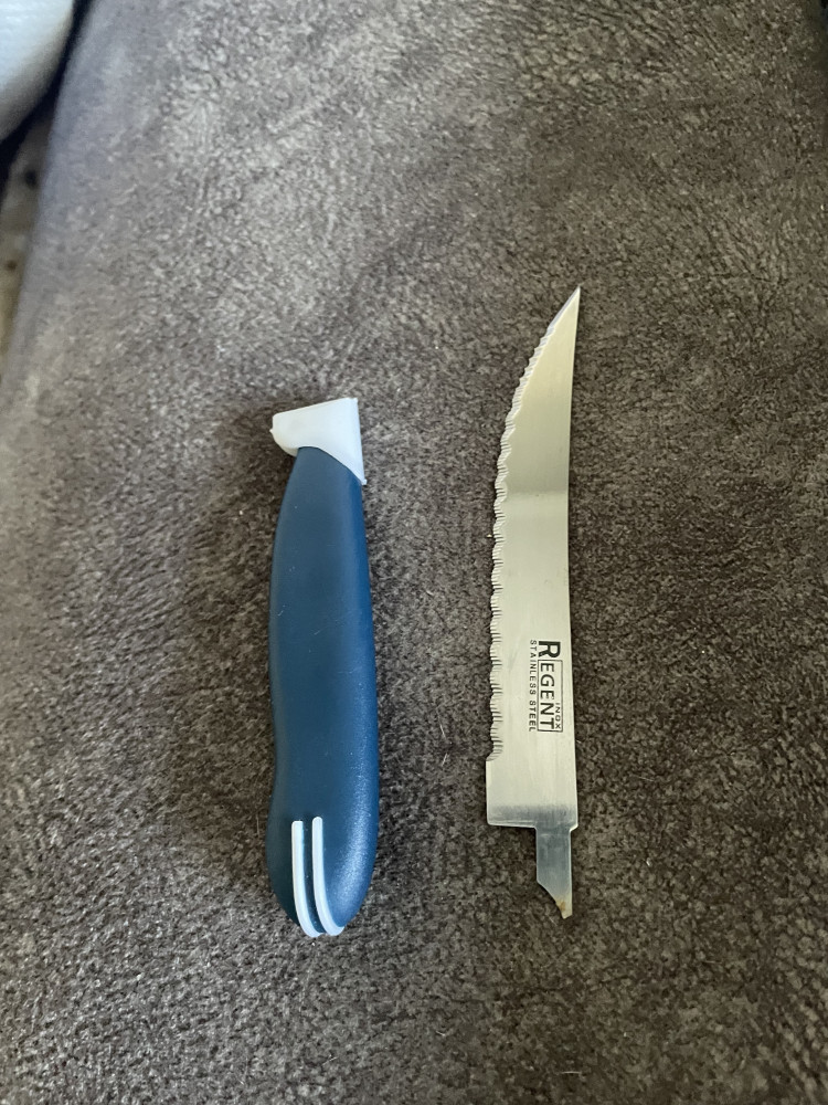 В использовании был менее недели. Нарезали им сыр и колбасу, не мясо с костями! Возврат не сделают, потому что прошло 14 дней с момента покупки, но этот нож не единственный и использовался всего несколько раз. Теперь на выброс. А еще пишут для стейка. Не покупайте этот бренд. Все-таки Трамонтина в оригинале, пусть и по высокой цене, отличного качества! Более 4-х лет в использовании у нас такой.