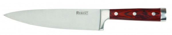 Аккуратный дизайн и отличного качества лезвие ножа-шефа делает его одним из популярных среди покупателей. Изделие оснащено эргономичной ручкой и нержавеющей сталью, которая долгое время сохраняет заточку и имеет высокую прочность. Нескользящая ручка весьма комфортно ложится в руку. Сбалансированность ножа гарантирует приложение наименьших усилий при обработке пищи. Изделие может быть прекрасным подарком для любителей готовить. Такого рода посуда займет заслуживающее место из числа аксессуаров на вашей кухне и превратит готовку каждого блюда в удовольствие!
