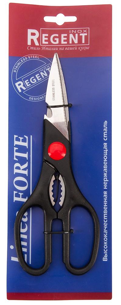 Regent Ножницы кухонные Regent «Linea Forte», 200 ммудобные прочность режут В данный момент этот товар отсутствует в продаже. Возможно, у нас найдется аналогичный или похожий товар здесь. Серия: Ножницы кухонные Кухонные ножницы Linea Forte сочетают в себе многофункциональность, легкость в использовании и классический дизайн. Они изготовлены из качественной нержавеющей стали и пластика, поэтому изделие долго служит и не тускнеет с годами. Этот прочный и надежный аксессуар легко справится с любыми видами нарезания. Также ножницы прекрасно подойдут для курицы, рыбы, мяса и других продуктов. Данная посуда отлично подходит для ежедневного использования. Такое нужное изделие обязательно займёт достойное место среди аксессуаров на вашей кухне. |