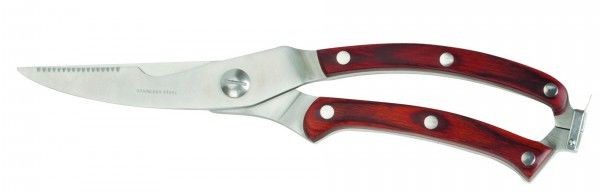 Серия: Ножницы кухонные Кухонные ножницы имеют лезвия, произведенные из нержавеющей стали и сильные утолщенные ручки из дерева пакка. Эти материалы не впитывают запахи, и не подвергаются коррозии. Пакка — это расслоенный пластик, главными элементами которого считается |