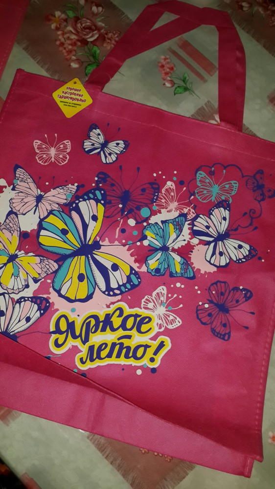 Очень красивая, яркая, все как на рисунке. Ткань тонкая, очень легкая, на лето для пляжа отличный вариант сложить полотенце, купальники, очки и пр. Если конечно не складывать туда книги, банки или другие тяжелые вещи)