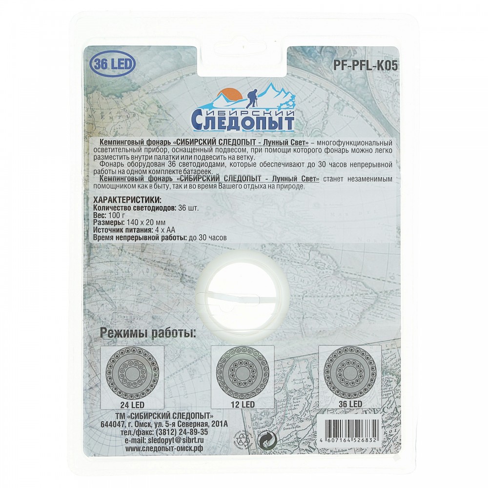 Следопыт Фонарь кемпинговый «Сибирский следопыт - Лунный Свет», 36 LВ данный момент этот товар отсутствует в продаже. Возможно, у нас найдется аналогичный или похожий товар здесь. Фонарь кемпинговый «Сибирский следопыт - Лунный Свет», 36 L - многофункциональный осветительный прибор, оснащенный подвесом, при помощи которого фонарь можно легко разместить внутри палатки или подвесить на ветку. |