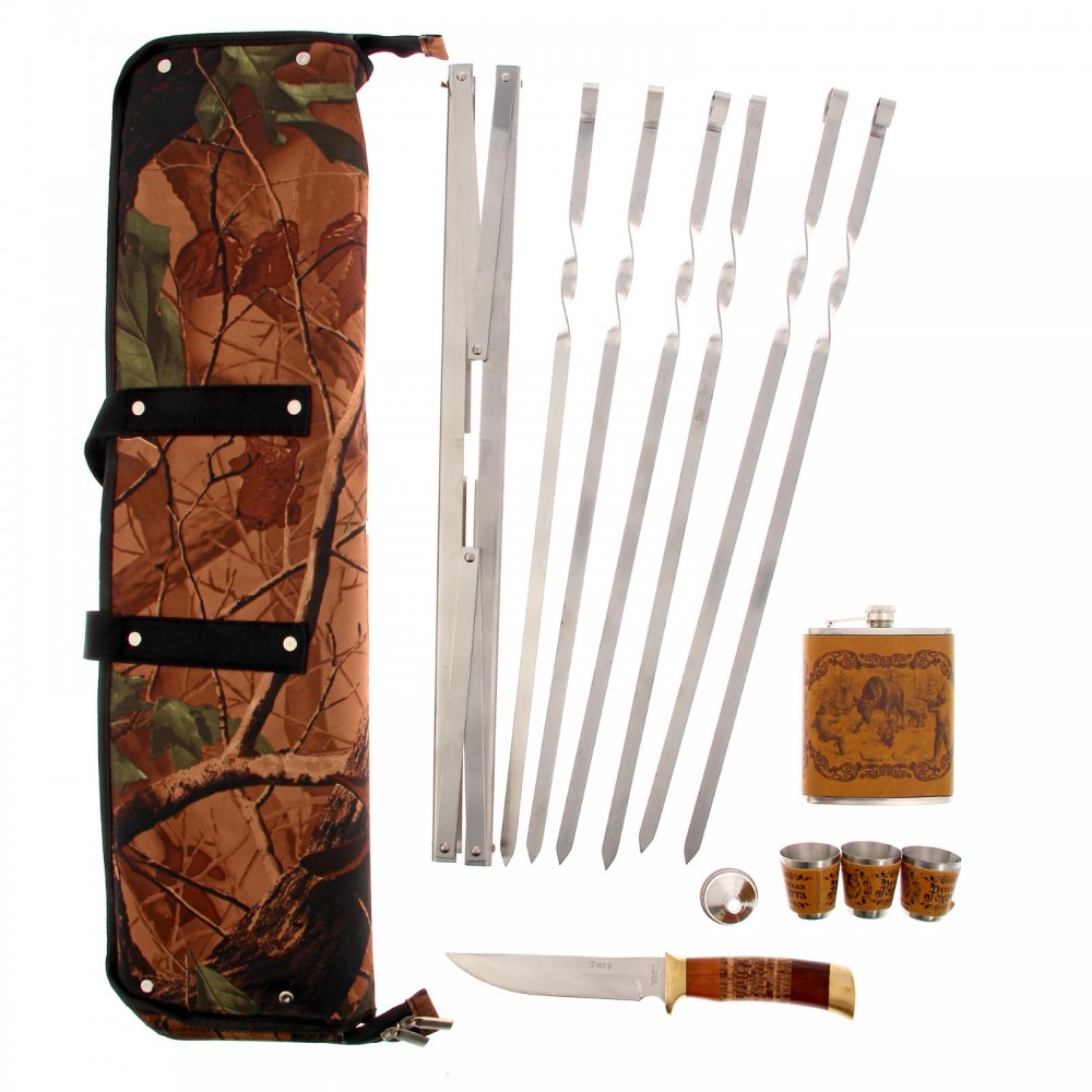 Набор для шашлыка «Охота на лося.Волки», 63 смВ данный момент этот товар отсутствует в продаже. Возможно, у нас найдется аналогичный или похожий товар здесь. Собираетесь весело провести время с друзьями, выехать на природу и устроить пикник? Ничего не забыть и хорошо провести время поможет набор для шашлыка «Охота на лося.Волки», 63 см. Несмотря на компактность и простоту переноски, он вмещает необходимые вещи для поездки. Сумка выполнена из плотной ткани «армейской раскраски», а мангал, нож и шампуры — из нержавеющей стали. Фляжка и стопки дополнены чехлами из искусственной кожи, а нож имеет удобную деревянную рукоятку. Набор — прекрасный подарок друзьям, близким или самому себе! |
