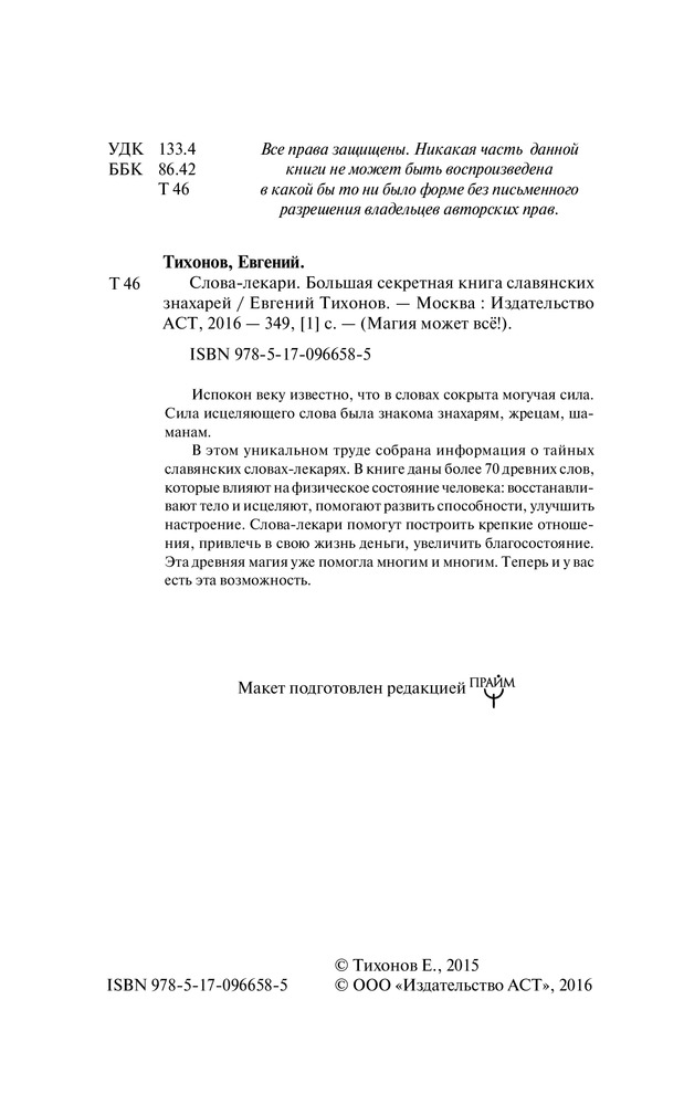 В данный момент этот товар отсутствует в продаже. Возможно, у нас найдется аналогичный или похожий товар здесь. Серия: Магия может все! Испокон веку известно, что в словах сокрыта могучая сила. Сила исцеляющего слова была знакома знахарям, жрецам, шаманам.