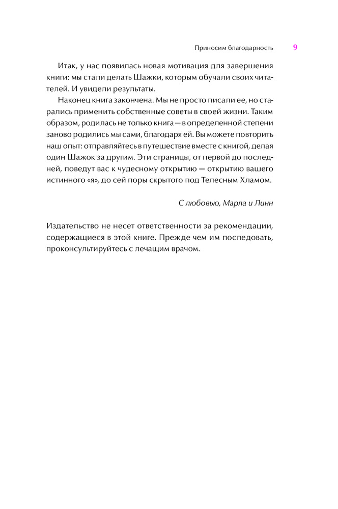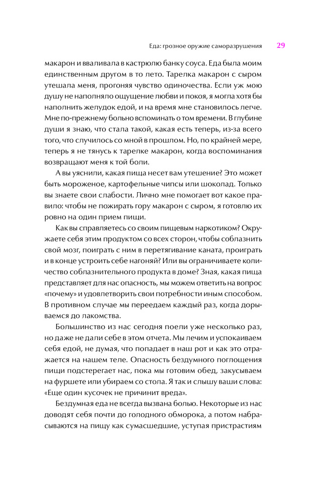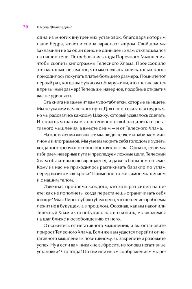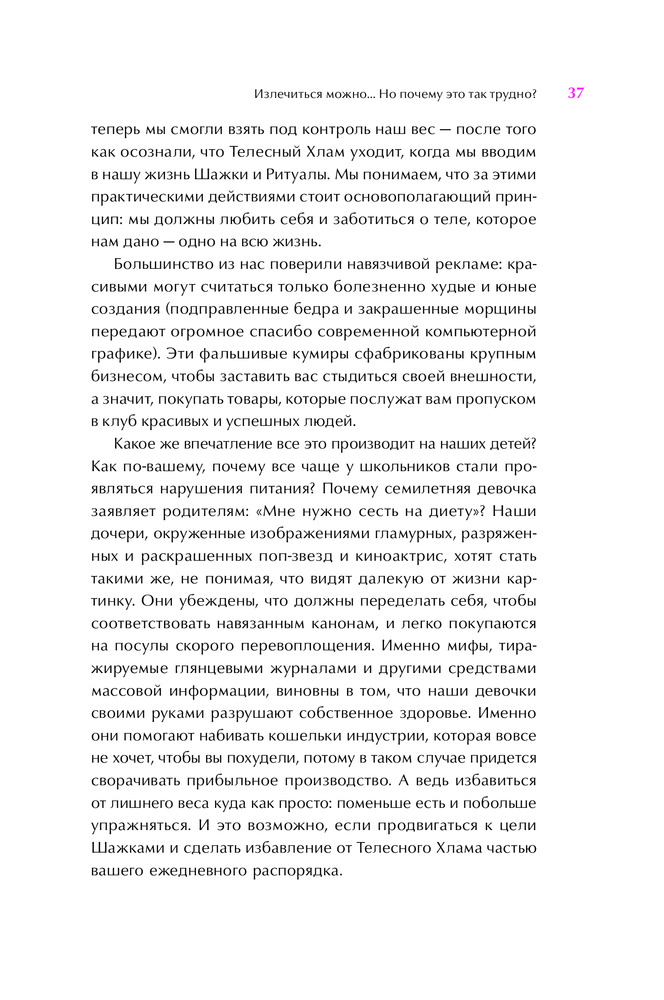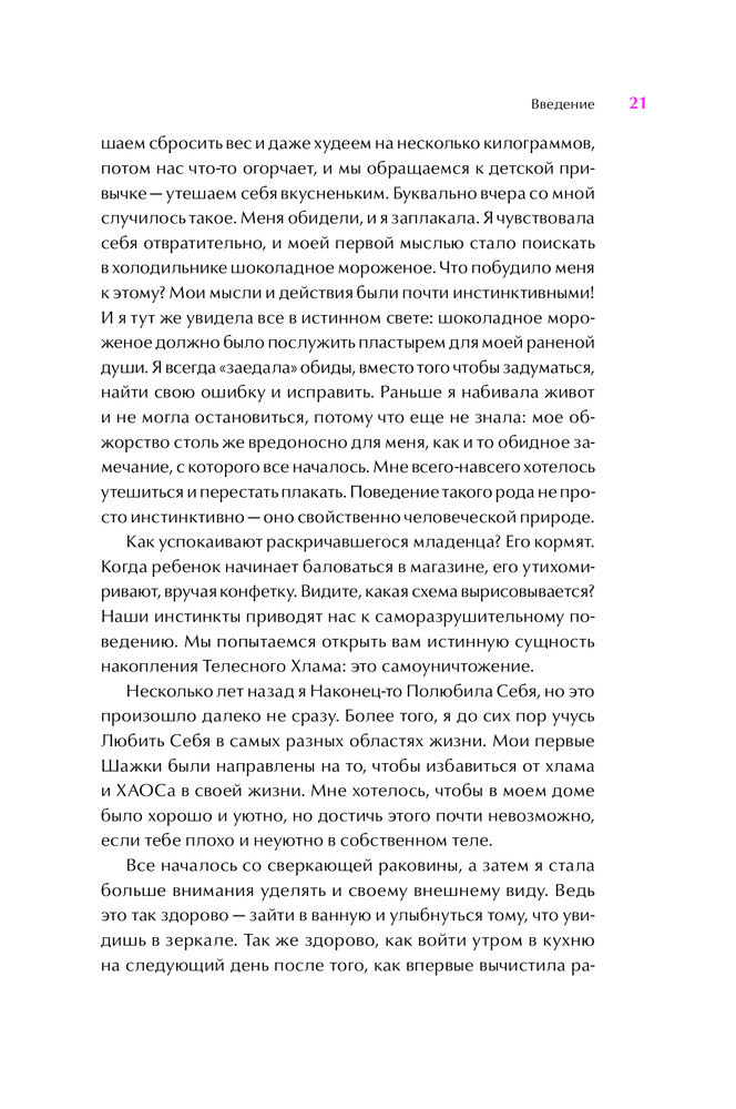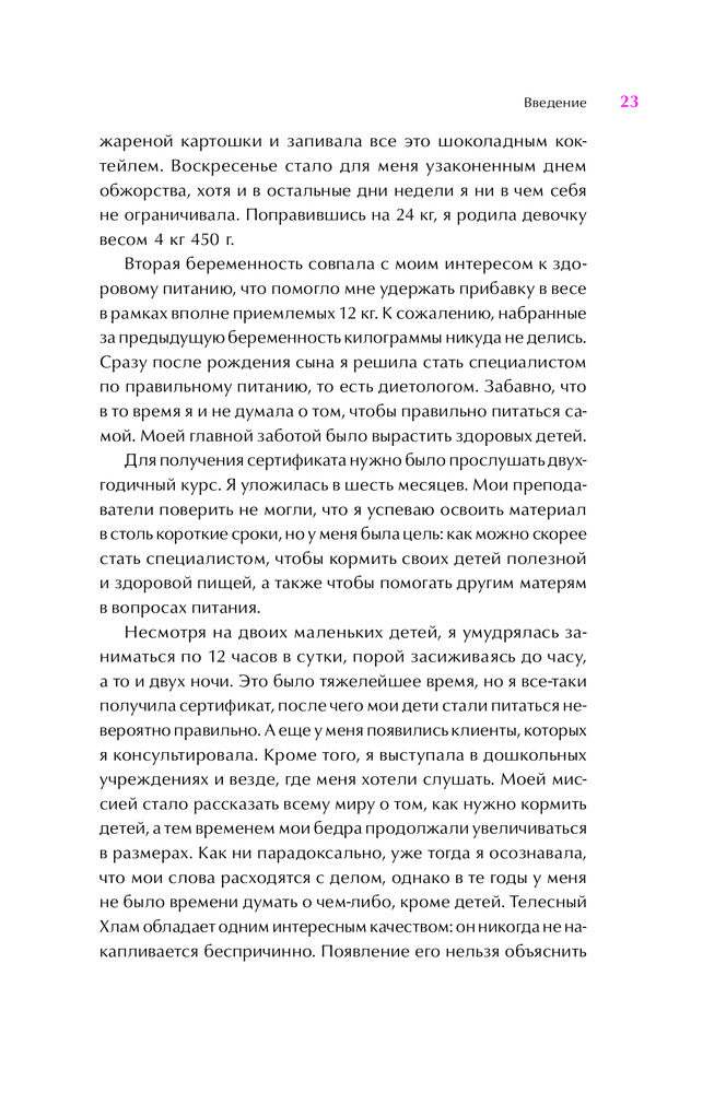 Книга понравилась, интересная, в ней описано, как люди не могут избавится от хлама в своей душе, теле, весь этот хлам в суете нашей ежедневной жизни накапливается и мы не замечаем, как превращаемся в страшных, толстых людей. Книга заставляет задуматься, сделать анализ нашего отношения к себе. Рассказаны моменты о правильном питании. Рекомендую читателям, не пожалеете, если приобретёте эту книгу.