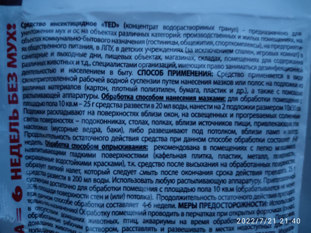 Просто прелесть!Я распыляю Тэда на стены окна шторки и т.д Мухи падают месяц,клевая штука,всем советую приобрести Спасибо ФЛИП!!!