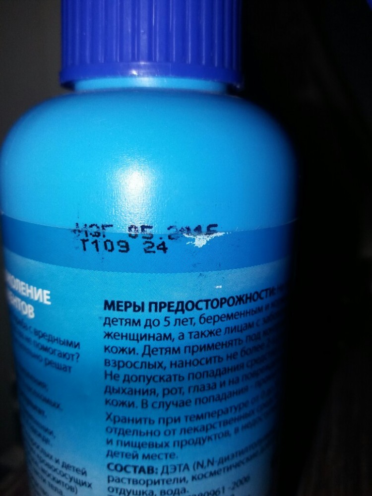 ДЭТА (10%), вода, косметические добавки, отдушка.