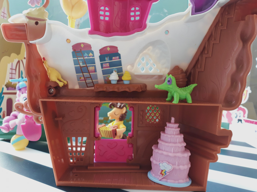 Вы сможете открыть розовые ворота в "Сахарный дворец" и впустить хозяйку домика, Пинки Пай, внутрь. Два этажа дома обставлены с большим трепетом, ведь в каждой частичке интерьера содержится тепло и тонкий вкус.