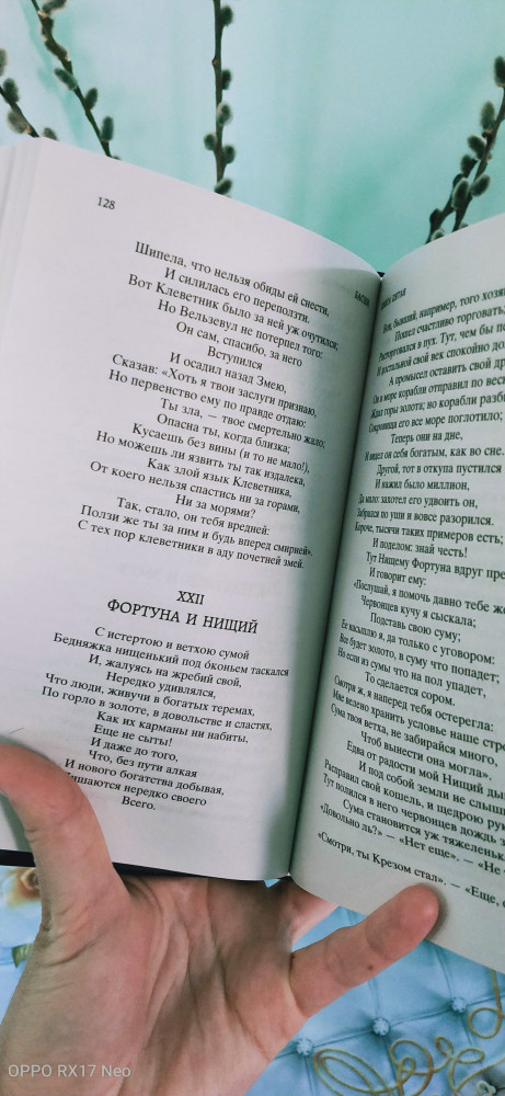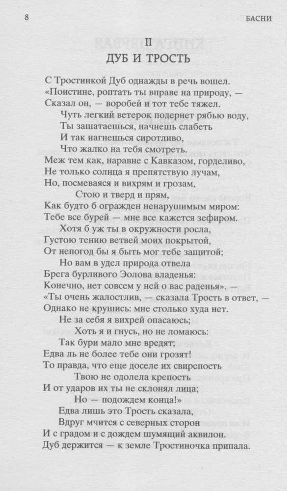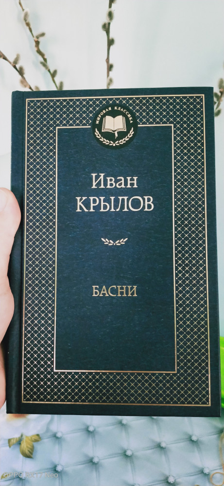 Стоит книга достаточно дешево, это выразилось в тонких шершавых страницах, книга легкая. Но переплет, обложка крепкие, шрифт хороший, не несет резкого запаха типографской краски. Собрание басен полное. Осталась довольна.