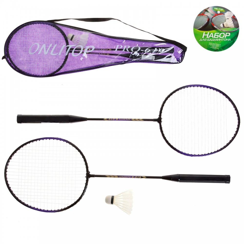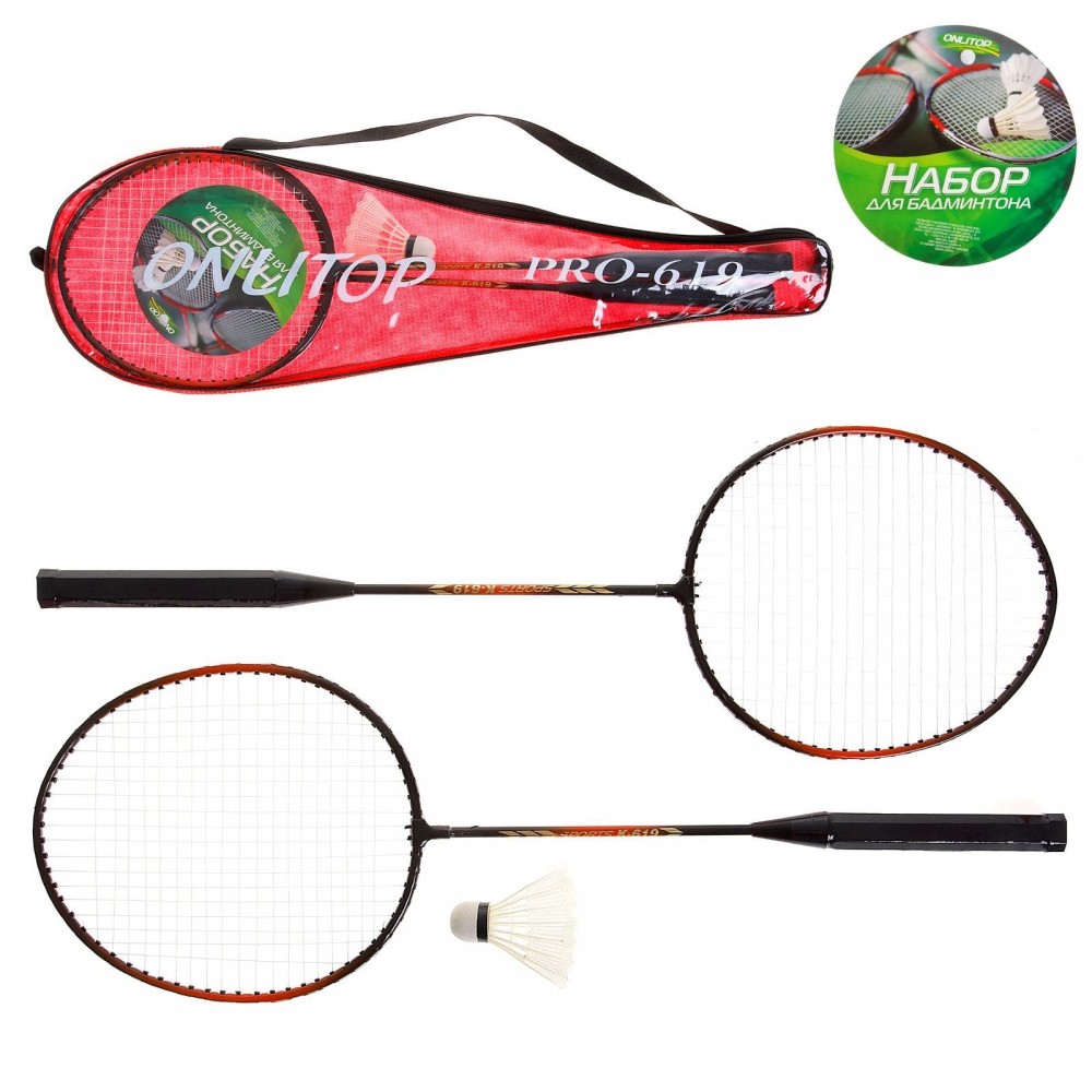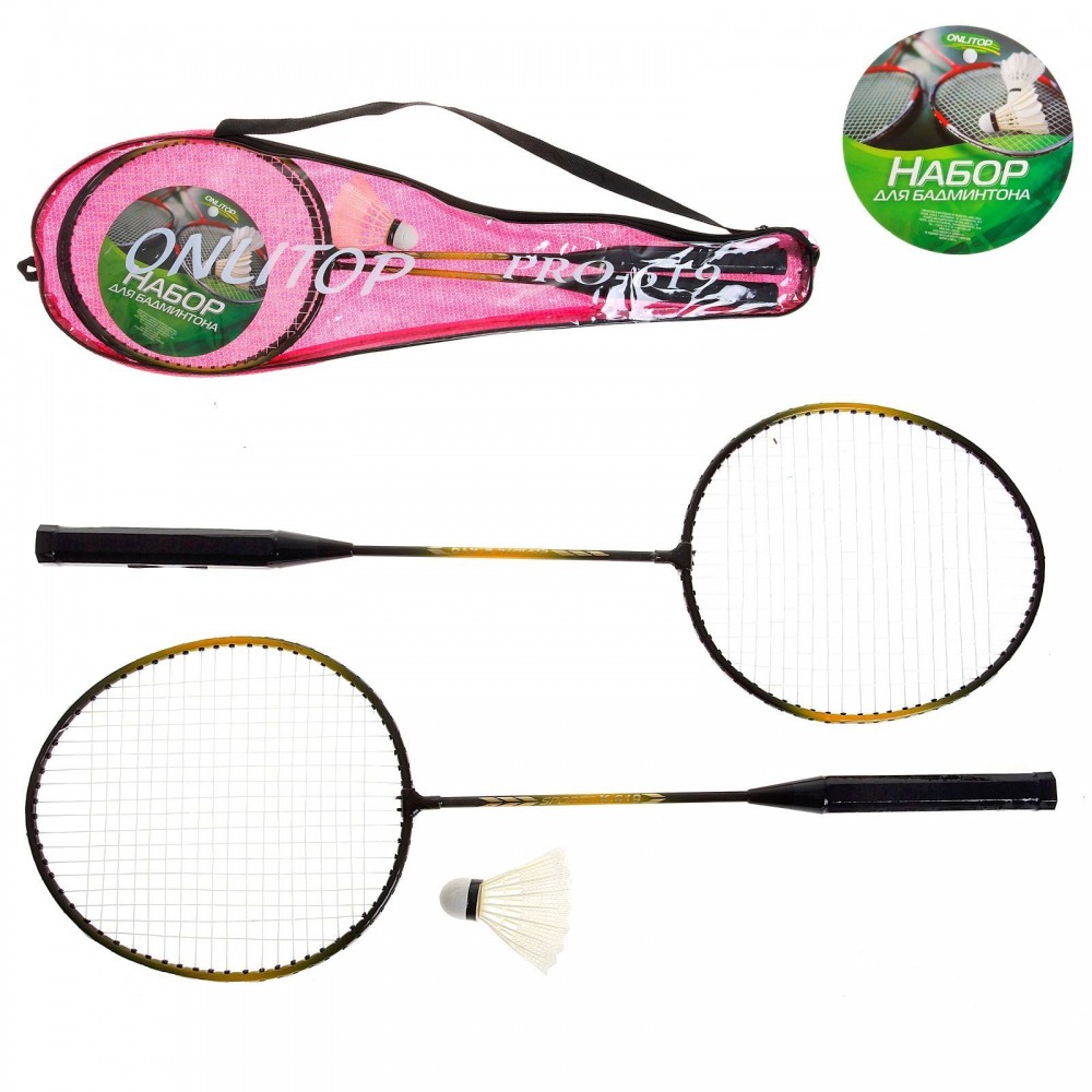 ONLITOP Бадминтон GREEN, набор 4 предмета: 2 металлические ракетки, волан, чехол, цвет в ассортименте-25% +115