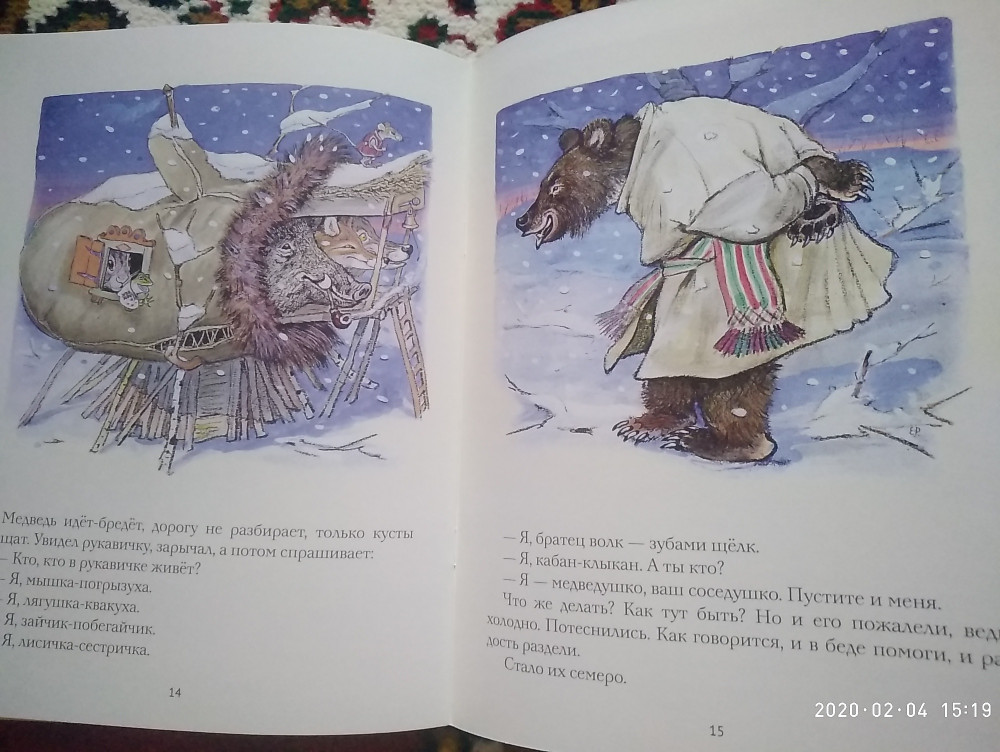РукавичкаВ данный момент этот товар отсутствует в продаже. Возможно, у нас найдется аналогичный или похожий товар здесь. Серия: Любимая мамина книжка Сюжет украинской народной сказки «Рукавичка» схож с сюжетом русской народной сказки «Теремок»: собрался дед в лес за дровами; шёл-шёл да и не заметил, как потерял рукавичку. Бежала мышка, увидела рукавичку и решила в ней поселиться. Потом прискакала лягушка, прибежал зайчик, за ним — лиса, за лисой — волк, кабан, медведь... Места, как всегда бывает в сказке, всем хватило!.. Книжка проиллюстрирована известным художником Евгением Рачёвым. Приводятся рисунки первой и самой знаменитой версии — той, что сегодня порисуночно хранится в художественных музеях мира. При этом один рисунок публикуется впервые. Книжка выходит к 110-летию со дня рождения художника. Для детей дошкольного возраста. |