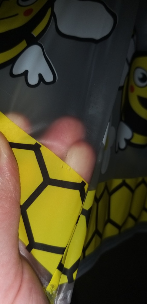 сам зонт хороший яркий. но качество - не ахти. списываю это на цену, цена = качество. Но 3 года назад брала такой же с пиратами и по сей день все отлично, все целое. а этот пришел с дырками. но оставила так младший ребенок хотел тоже такой как и у старшего. на фото видно дырки, причем в нескольких местах и сквозные. будут пропускать воду. заклею скотчем попробую.