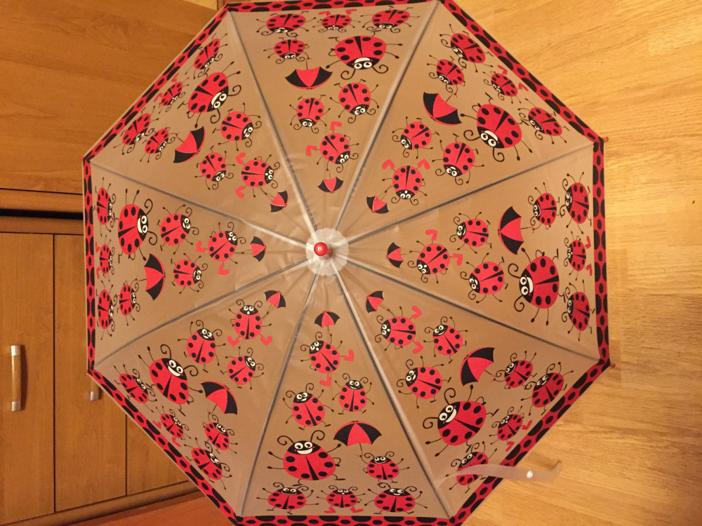 Зонт детский «Божьи коровки», очень понравился и мне, и внучке. Необычный материал, приятный на ощупь, с красивым рисунком покорил сердце младшей внучке сразу, как увидела его. Кнопка хорошо работает, теперь ждем дождя с нетерпением. Спасибо!
