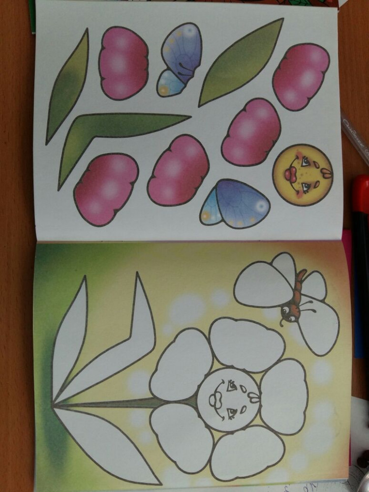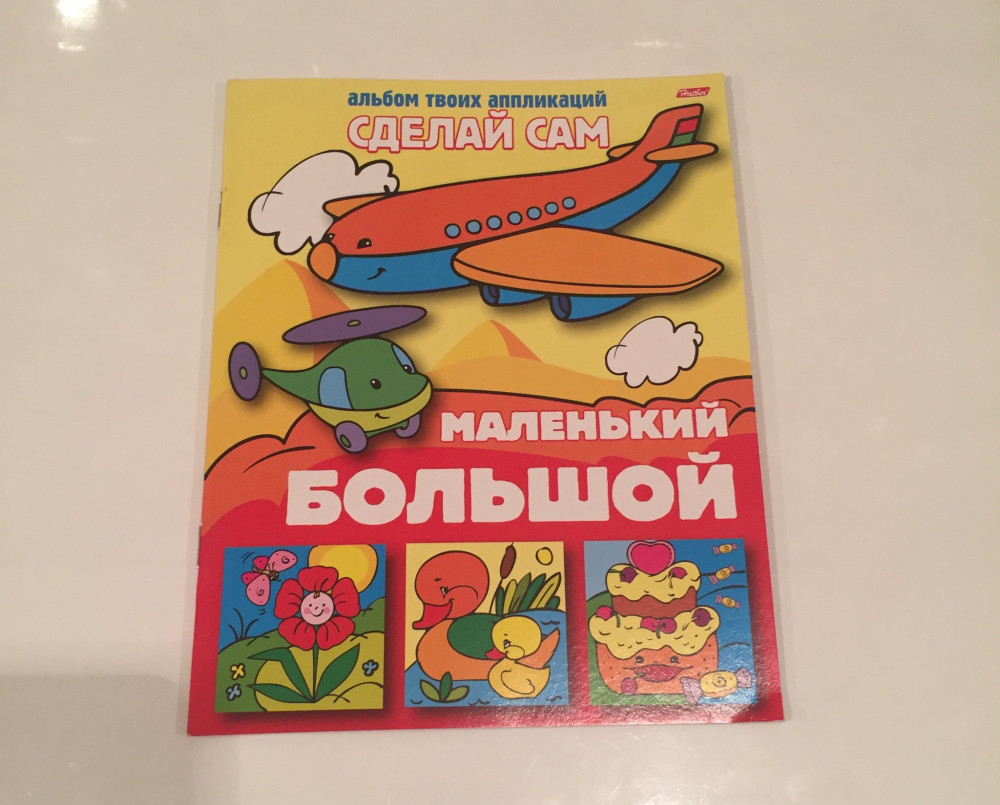 Первое, что бросается в глаза, это то что книга не соответствует заявленному размеру, в ширину она шире, в высоту ниже чем А5. Высота 20 см, ширина 16 см. Картинки аппликаций яркие лишь на обложке, внутри цвета рисунков не насыщенные, бледные, полное разочарование. В живую, картинки намного тусклее, чем на фото, будто выцветшие.