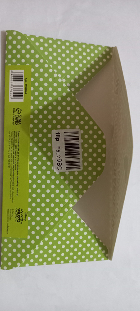 Яркий конвертик. Штрих код внутри наклеен, не отдирается, пришлось дарить с ним.