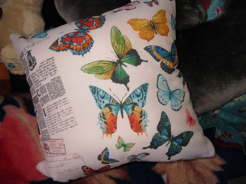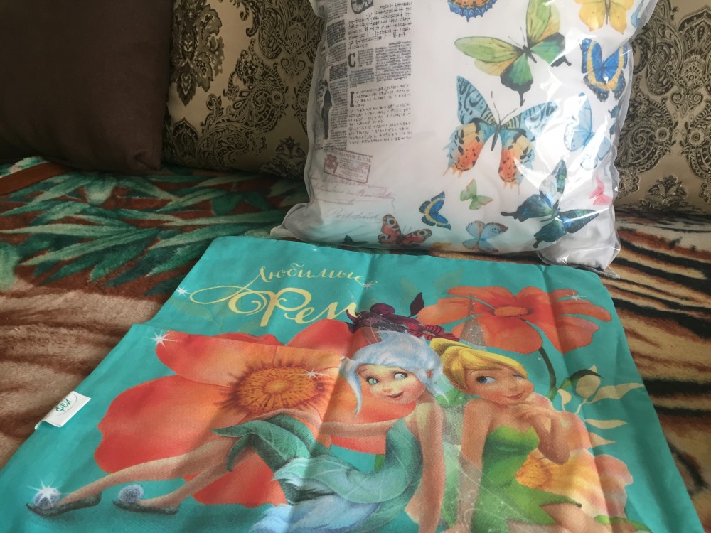 Великолепная и очень красивая подушечка. Очень белоснежная! Цвета яркие. На фото получилась не такой белой, как на самом деле, но зато хорошо видно, насколько качественно напечатаны рисунки, и что все оттенки насыщенные.