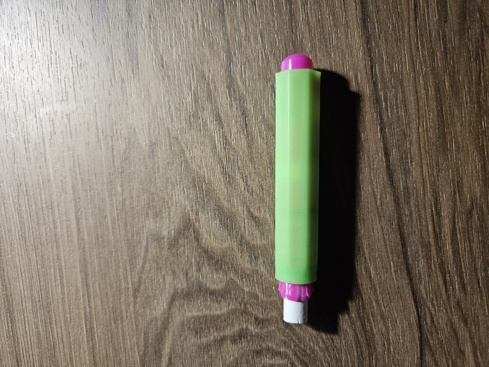 Отличный держатель для тех, кто часто использует мел в написании. Не пачкает руки, удобен в использовании, хорошее качество пластика (не скользит в руке, крепко держит мелок) Детям в школе интереснее писать такой "волшебной" ручкой)) Необходимо только запастись грифелями-мелками нужного диаметра.