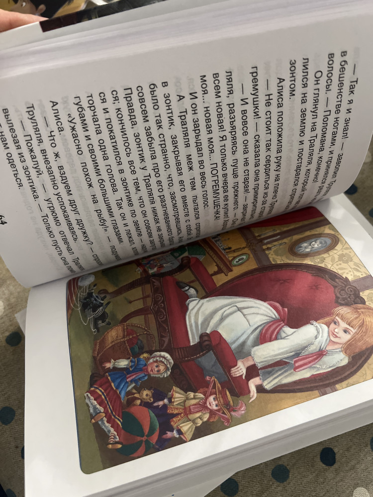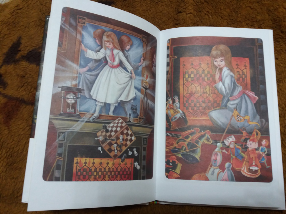 Книга маленького формата, удобно для детских рук, и хорошего качества. Картинок много и они яркие. Племяннице 8 лет, эта часть ей понравилась больше, чем "Алиса в стране Чудес".