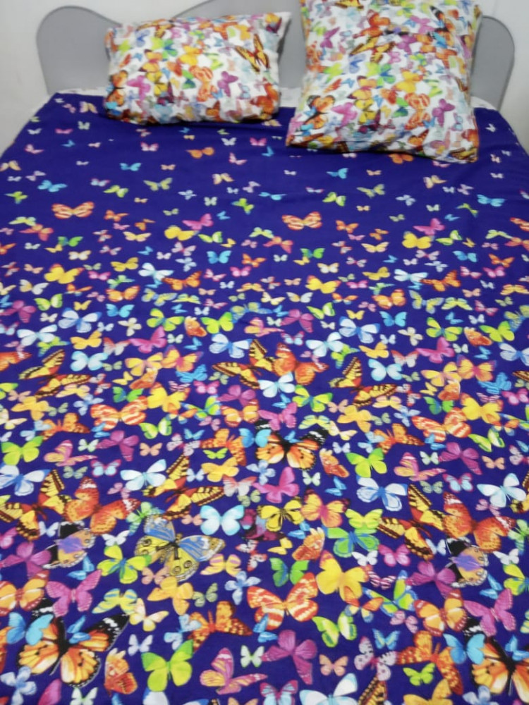 Классный комплект. Пользуюсь этой фирмы уже как 2 года. Все такой же комплект как и новый. Не выцвел. Жёсткости ткани не почувствовали. На полуторку и двух спалку брала) 4 комплекта из бязи взяла и офигенно смотрится
