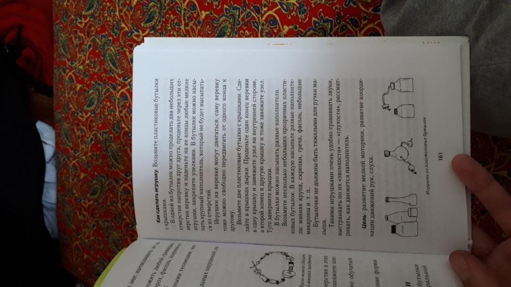 Отличная книга! Подробно описано, как смастерить развивающие игрушки, коврики своими руками. Развивающие игры хорошо и доступно описаны, затраты на приобретение материала минимальны. Задания обучают ловкости, аккуратности, вниманию, координации движения, мелкой моторики. Я очень довольна, что познакомилась с методикой Монтессори! Спасибо, ФЛИП !