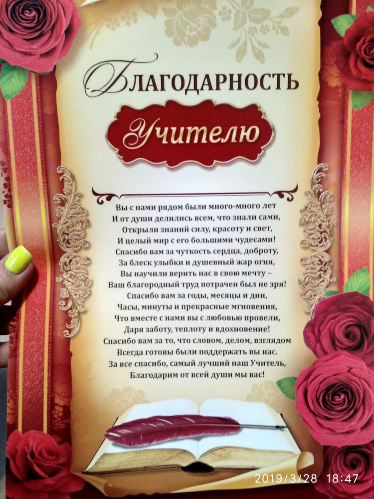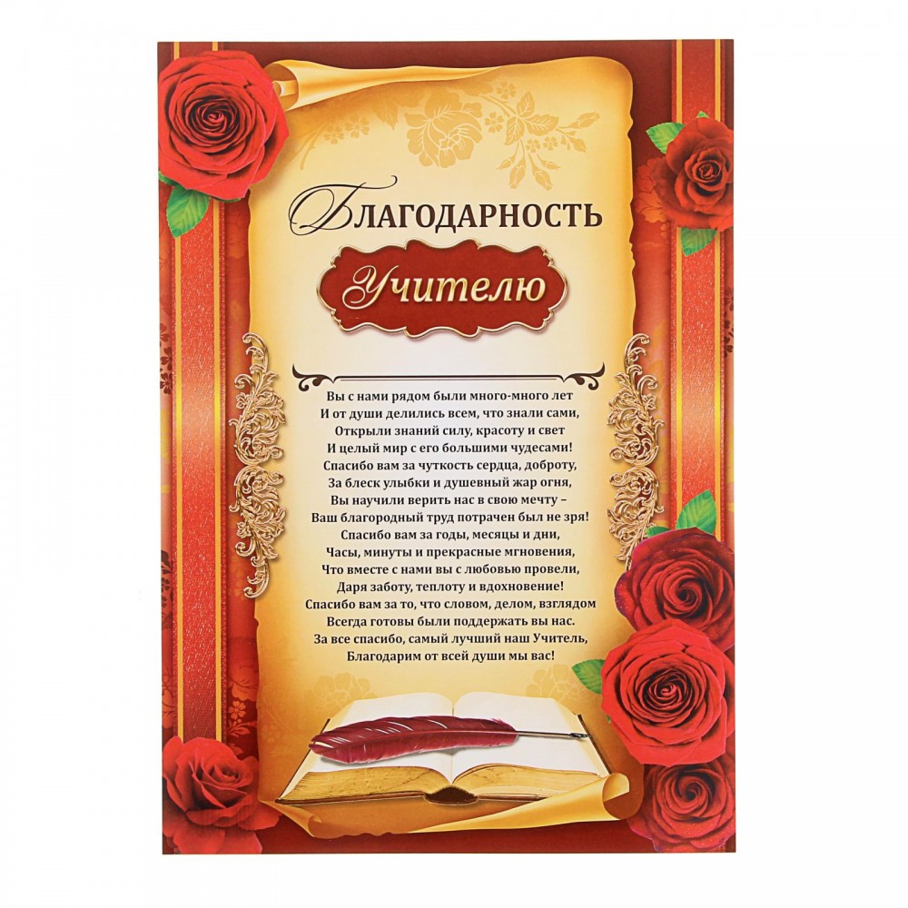 Отзывы «Благодарность учителю, 21х30 см»