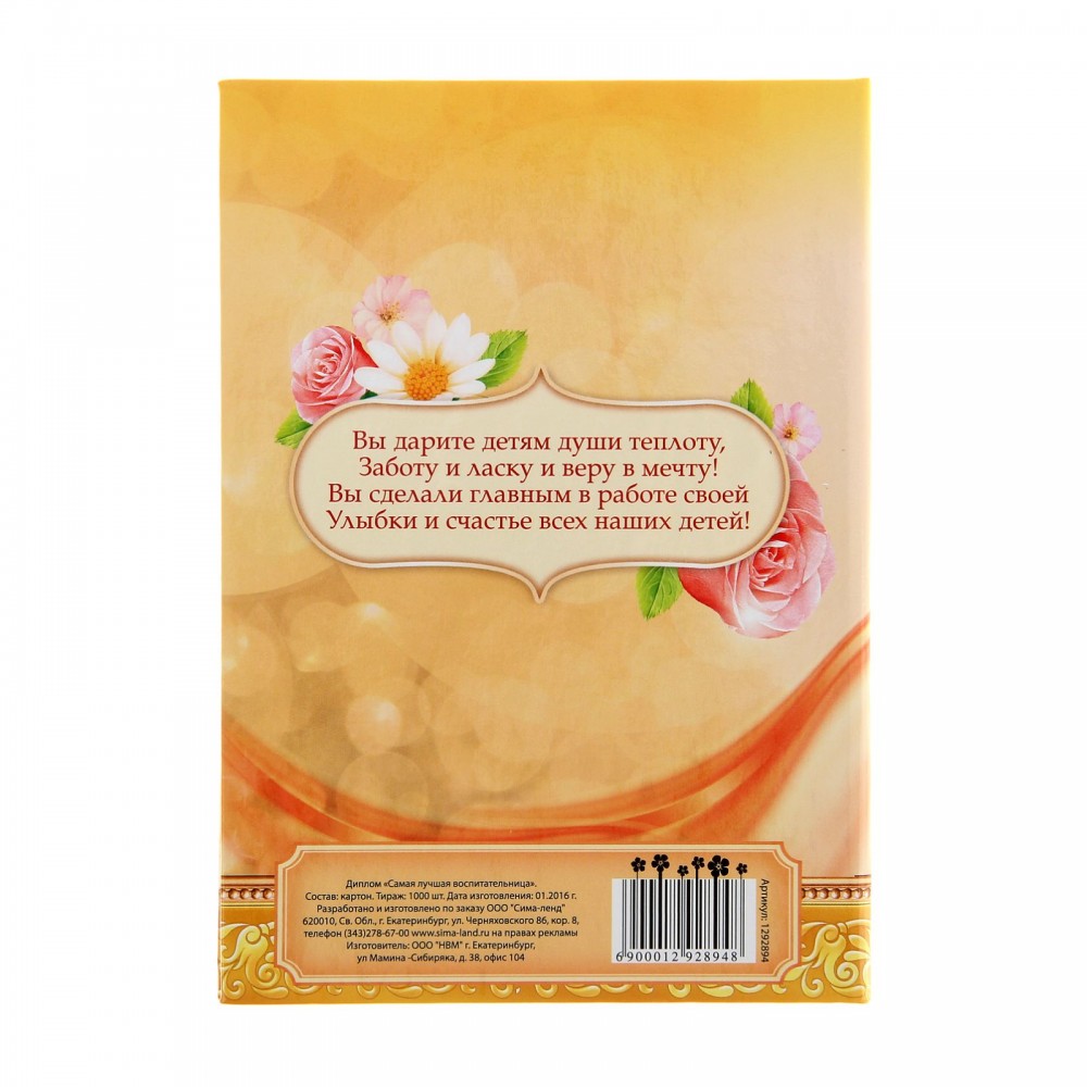 Диплом-книжка «Самая лучшая воспитательница»+34