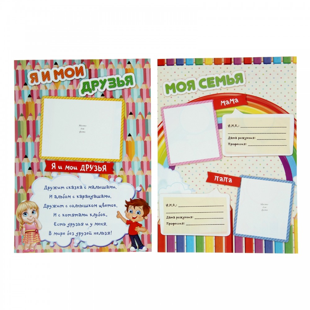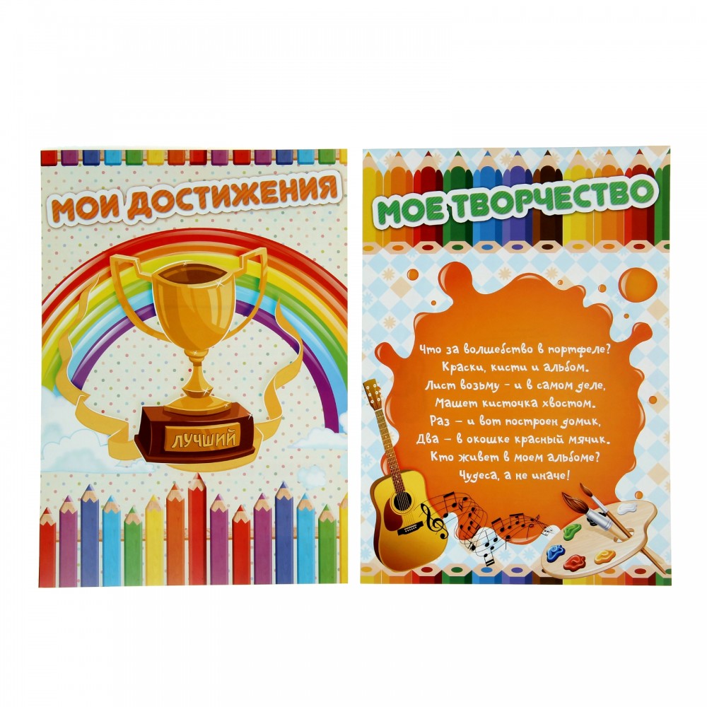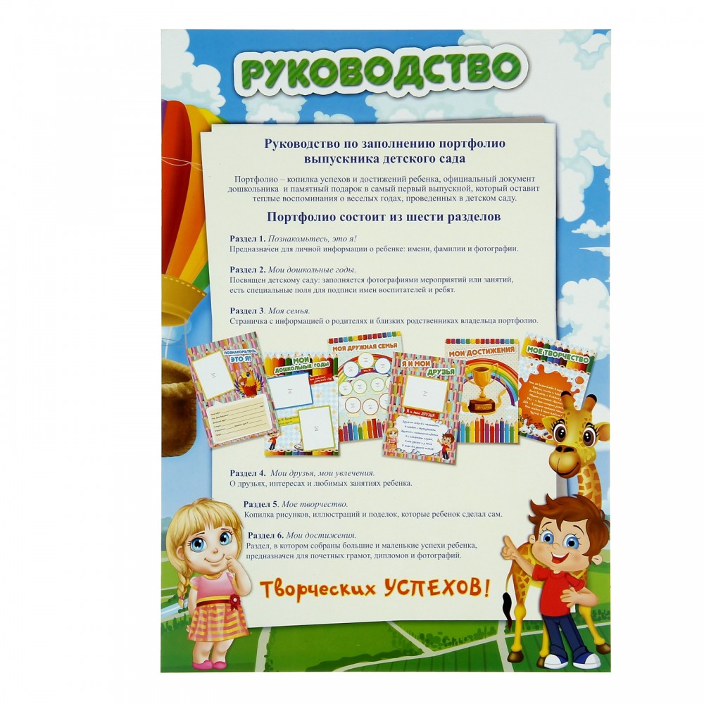 Яркая папка со скоросшивателем и держателем для документов надёжно сохранит воспоминания о беззаботном детстве. Красочные разделители из плотного картона для соответствующих разделов можно заполнить информацией и фотографиями. Руководство поможет создать лучшее портфолио на свете.