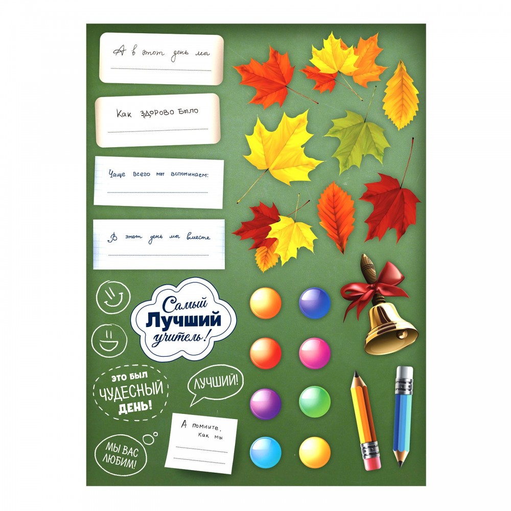 | Поздравительный плакат в папке «Дорогому учителю» с наклейками