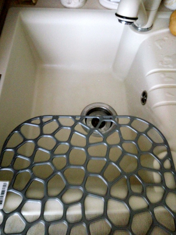 Хорошая решетка. Благодаря ей, теперь посуда бесшумно укладывается в раковину. И как раз серого цвета, то что нужно было.