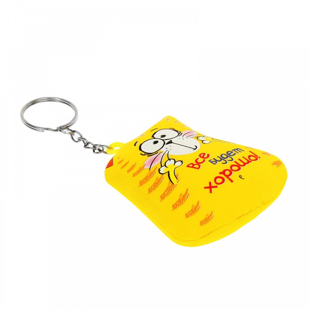 Думаю брелок не для ключей, а просто как презент. Ключи быстро его замарают и проткнут. А вот помять-пошуршать вечерком после работы можно, только бережно, чтобы сразу надпись-наклейку не стереть. Да, он именно шуршит тысячами мелких шариков. Хорошая штучка чтобы подарить и поднять кому-нибудь настроение.