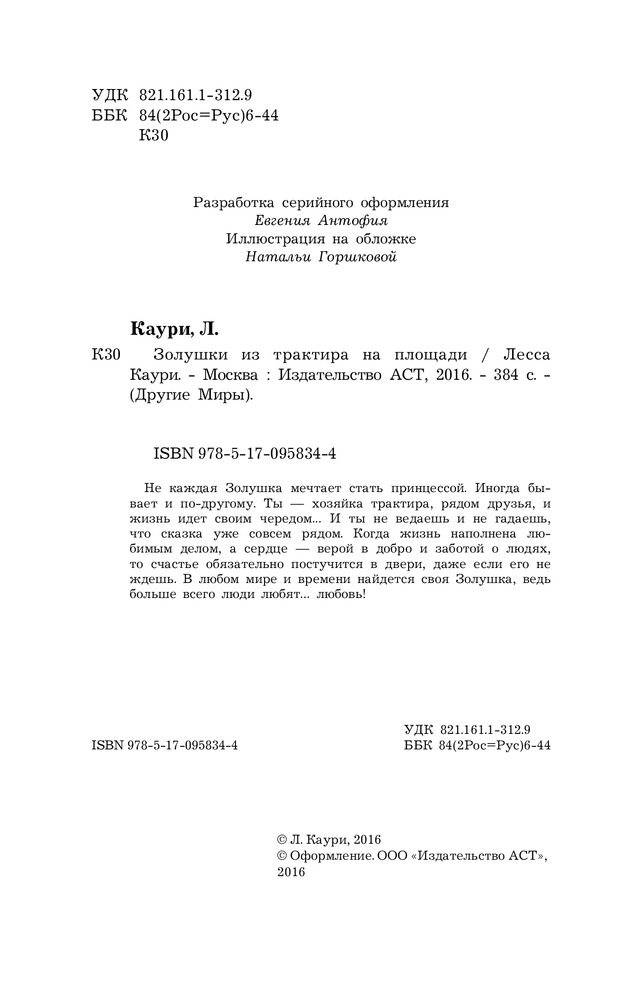 Золушки из трактира на площадиВ данный момент этот товар отсутствует в продаже. Возможно, у нас найдется аналогичный или похожий товар здесь. Серия: Другие миры Не каждая Золушка мечтает стать принцессой. Иногда бывает и по-другому. Ты – хозяйка трактира, рядом друзья, и жизнь идет своим чередом… И ты не ведаешь и не гадаешь, что сказка уже совсем рядом. Когда жизнь наполнена любимым делом, а сердце – верой в добро и заботой о людях, то счастье обязательно постучится в двери, даже если его не ждешь. В любом мире и времени найдется своя Золушка, ведь больше всего люди любят любовь! |