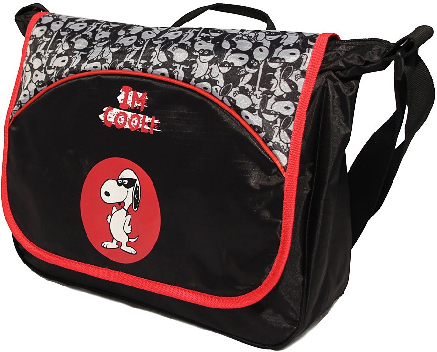 Сумка Snoopy "Я крут!" имеет объемное отделение на молнии, предназначенное для книг, тетрадей и предметов форматом А4, и внутренний карман на молнии, в который можно положить тетради и пенал. Сверху сумка закрывается широким клапаном на липучках. Благодаря регулируемой лямке, аксессуар подойдет детям любого роста. Удобная ручка позволяет носить его в руке и размещать на вешалке. Изделие изготовлено из износостойкой ткани, что позволит ему верно служить долгое время. Аксессуар декорирован ярким принтом (шелкографией и сублимированной печатью) и текстильным пулером.