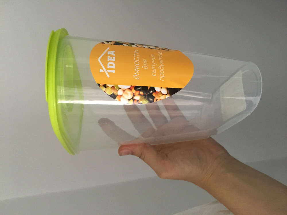 Самое главное, что крышка закрывается плотно. Очень хорошие контейнеры. Ещё сделаны так, что удобно их ставить друг на друга сверху. Храним в них каши.