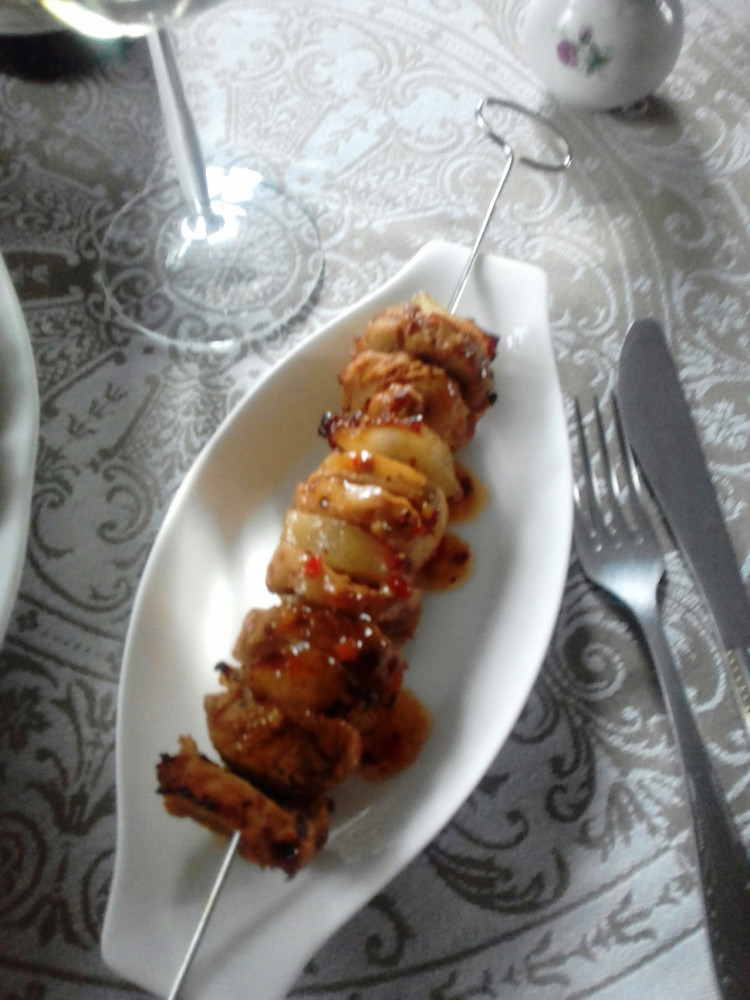 Все-таки очень хорошие, оригинальные блюда для изящной сервировки, я их очень люблю. Хороши как для небольшого стола, когда нужно подать для двух пар обедающих, например, так и для гостевого - они удачно и удобно вписываются между большими блюдами, занимая минимум места. Подаю в них нарезанный лимон для закуски, оливки, канапэ или волованы, также очень удобны для порционной подачи горячих закусок - вот как на шпажке на фото, а еще хорошо ложится и удобно есть рыбный стейк средней величины.