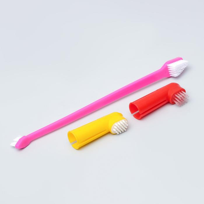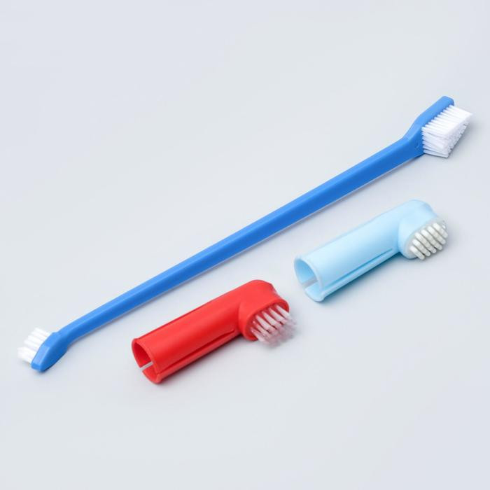 Пижон Набор: Зубная щетка двухсторонняя + щетка напальчник + массажер для десен-25% +29 качество изготовления несколько насадок крупные насадки жёсткие ворсинки не подходят для кошек