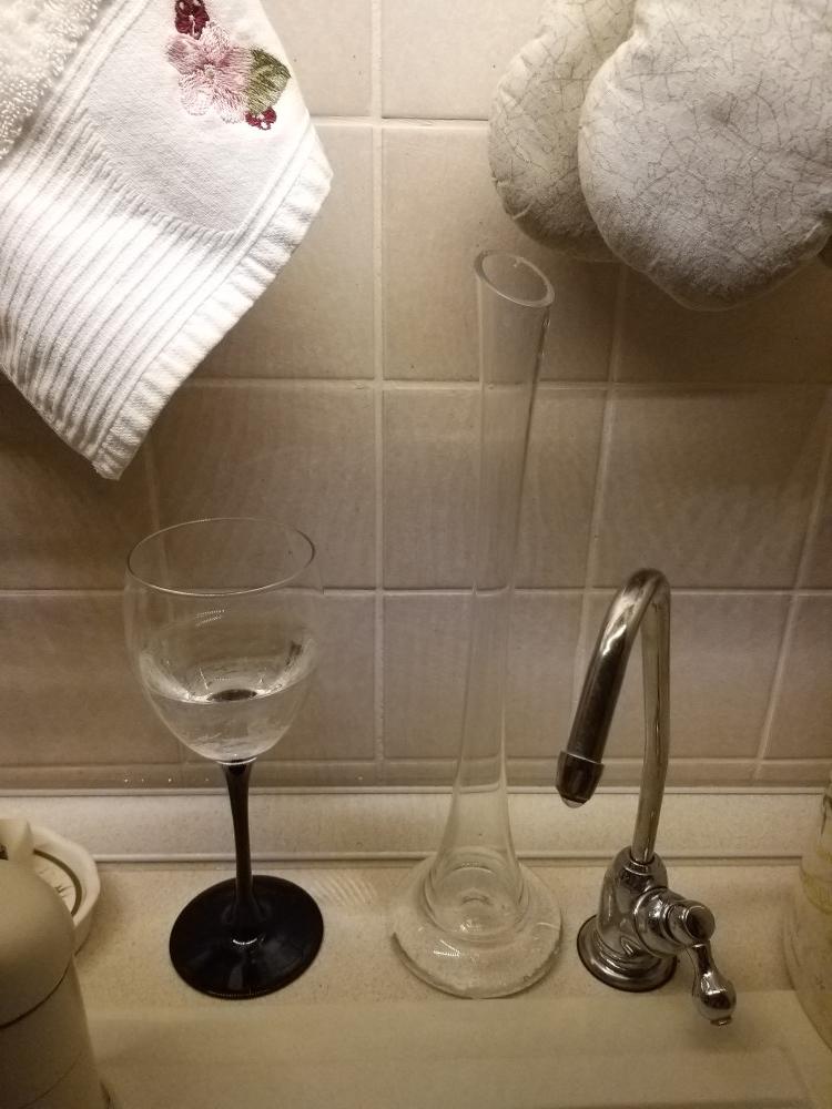 Специально покупала для одиночного экземпляра не важно какого цветка, только ствол не должен быть толстым, иначе застрянет на полпути, а вытаскивая можно нечаянно сломать (ну или так показалось пока выдергивала толстую розу), но еще раз взглянув на фото образца, из любопытства решила узнать, какой объем воды необходим, для сравнения - фужер 250 мл заполнен еле наполовину, то есть на фото и полученная мной ваза отличаются, моя стройнее в талии :-) Когда в вазе стояли цветы, то добавляла воду раза 2-3 чайной ложкой, чтобы не перелить. В 2х словах, очень нравится, простая, но элегантная, ничего лишнего. Но при заказе учитывйте тот факт, что может прийти немного меньше объемом
