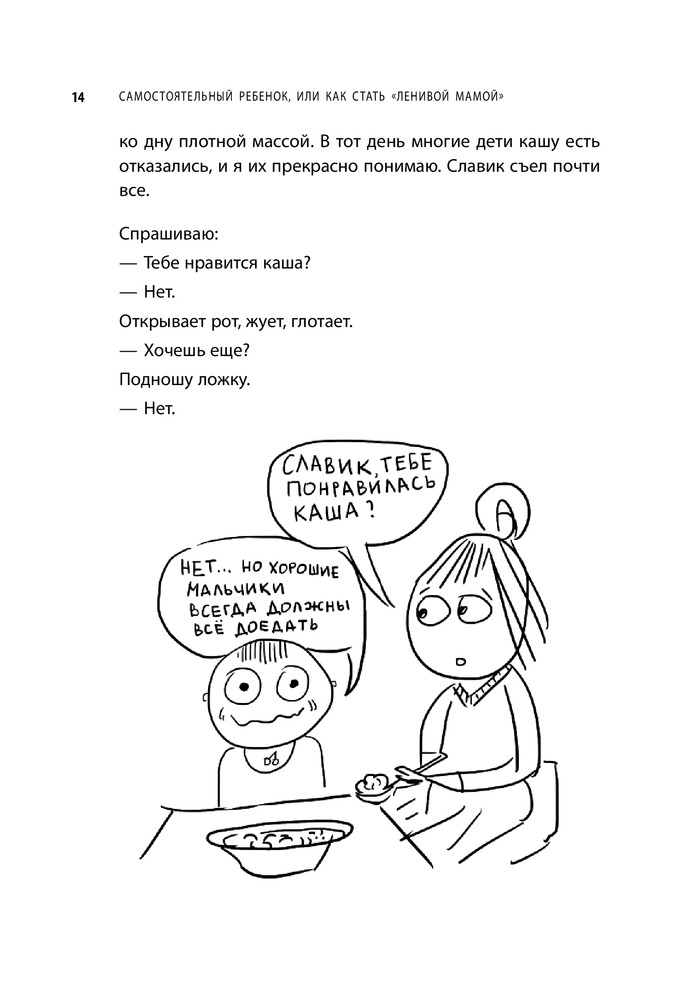 Самостоятельный ребенок или как стать «ленивой мамой»легко читается полезные советы примеры из жизни иллюстрации В данный момент этот товар отсутствует в продаже. Возможно, у нас найдется аналогичный или похожий товар здесь. Серия: Ленивая мама Статья «Почему я ленивая мама», напечатанная несколько лет назад, до сих пор кочует по Интернету. Она обошла все популярные родительские форумы и сообщества. Вызвала бурю споров и обсуждений. Оказывается, очень многих сегодня волнует тема самостоятельности детей, проблема инфантильности молодого поколения. Детский и семейный психолог Анна Быкова предлагает свой взгляд на этот вопрос. Для того чтобы ваш ребенок стал самостоятельным тоже нужны условия. Ведь если всегда подсказывать, помогать и советовать, он так и не научится ничего делать сам. Поэтому просто необходимо периодически включать «ленивую маму», осознавая, что это делается в интересах ребенка. |
