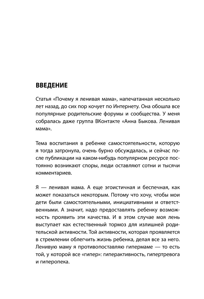 Заказала эту книгу по отзыву моей близкой подруги. Я только начала читать, но уже могу сказать, что книга очень интересная. Я бы сказала так: простыми словами о сложном и наболевшем. Рекомендую всем родителям, не только "ленивым мамочкам"